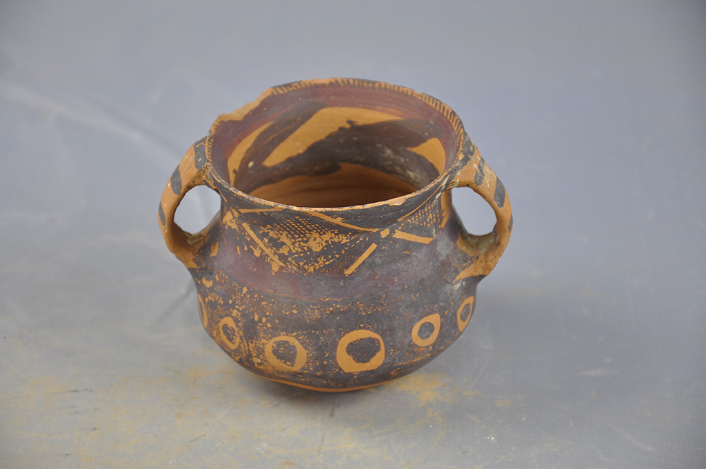 贝纹双耳彩陶罐 作者:未知 来源: 发布时间:2016-11-11 14:57:48 点击数: 次 【字体:小 大】 名称:贝纹双耳彩陶罐类别:陶器时代:马厂类型尺寸:高8.5cm,口径9cm,腹径9.5cm,底径5.3cm收藏单位:白银市博物馆 分享到: 智能标签: 贝纹 彩陶 文物 陶泥器