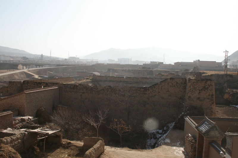 吕家堡子位于会宁县会师镇会师门社区西河沿社祖厉河台地上,堡以西约200米处是莲花山,堡东临祖厉河。堡平面呈正方形,边长30米,面积900平方米;堡座西面东,堡门东开,堡墙西高东低,南北两墙与东墙等高,西墙高9米,东墙及南北墙高6米,基宽4米,顶宽2米,夯层厚8厘米;四角有墩,墙顶及墩周围皆有女墙,墙高1.8米,基宽30厘米,夯层厚4厘米;东墙偏南处的内女墙塌陷12米,其余皆保存较好。堡西墙内侧留有当年合龙口的V型痕迹。该堡对于研究当地传统民居有一定的参考价值。